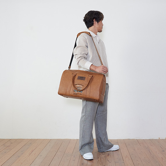 背部にはゴルフシューズを収納するポケットもあり、1泊のゴルフ旅行にも便利なサイズ感で仕上げております。ファッション性と希少性を兼ね備えた、旅行や普段使いもできる汎用性が高いボストンバッグを是非ご体験ください。特別な贈り物としてもオススメです。