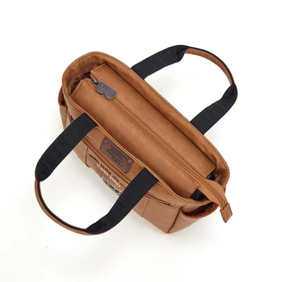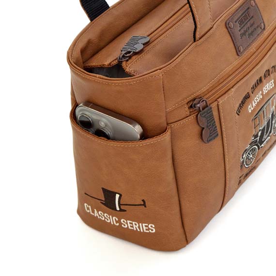 渋さとノスタルジックを感じさせる仕上がりにするため、ハイクオリティな刺繍と一般的にはあまり使われることのない高級素材を使用し、ファッション性にもこだわりました。生地も丈夫で傷が付きにくく撥水性が良い点もシェリフラウンドバッグの特徴です。