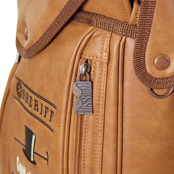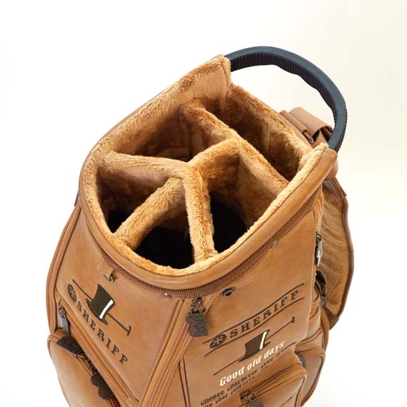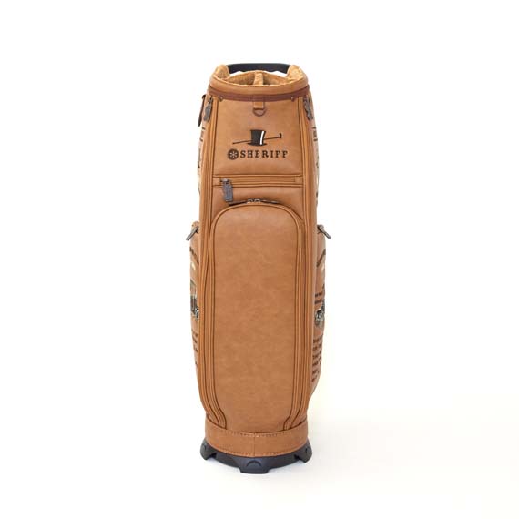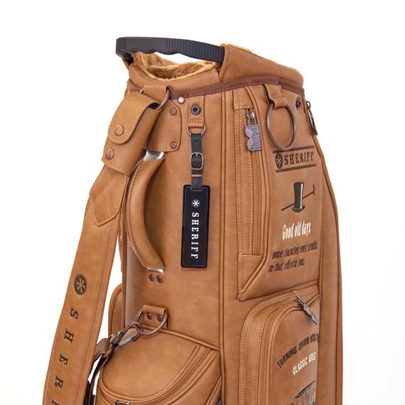 生地は丈夫で傷が付きにくく撥水性が良い点もシェリフキャディバッグの特徴です。 ファスナー引手や金具の仕上げなど細部の一つ一つにもこだわっています。