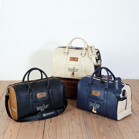 渋さとノスタルジックを感じさせる仕上がりにするため、ハイクオリティな刺繍と一般的にはあまり使われることのない高級素材を使用し、ファッション性にもこだわりました。生地も丈夫で傷が付きにくく増産も再販も一切行わないので他人と被りにくいのもシェリフボストンバッグの魅力です。