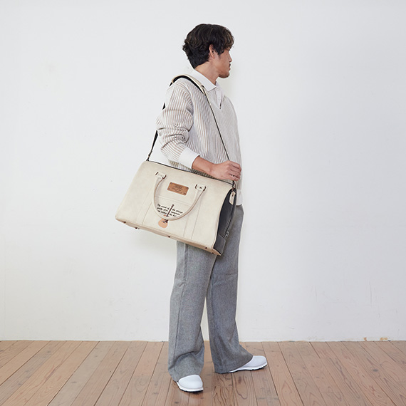 背部にはゴルフシューズを収納するポケットもあり、1泊のゴルフ旅行にも便利なサイズ感で仕上げております。ファッション性と希少性を兼ね備えた、旅行や普段使いもできる汎用性が高いボストンバッグを是非ご体験ください。特別な贈り物としてもオススメです。