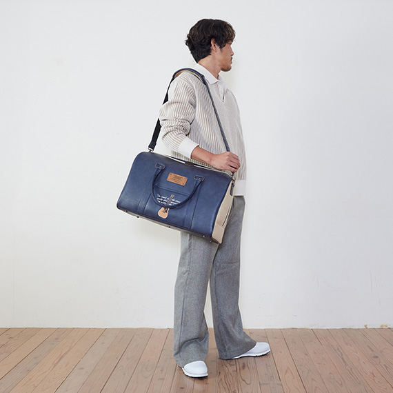 背部にはゴルフシューズを収納するポケットもあり、1泊のゴルフ旅行にも便利なサイズ感で仕上げております。ファッション性と希少性を兼ね備えた、旅行や普段使いもできる汎用性が高いボストンバッグを是非ご体験ください。特別な贈り物としてもオススメです。