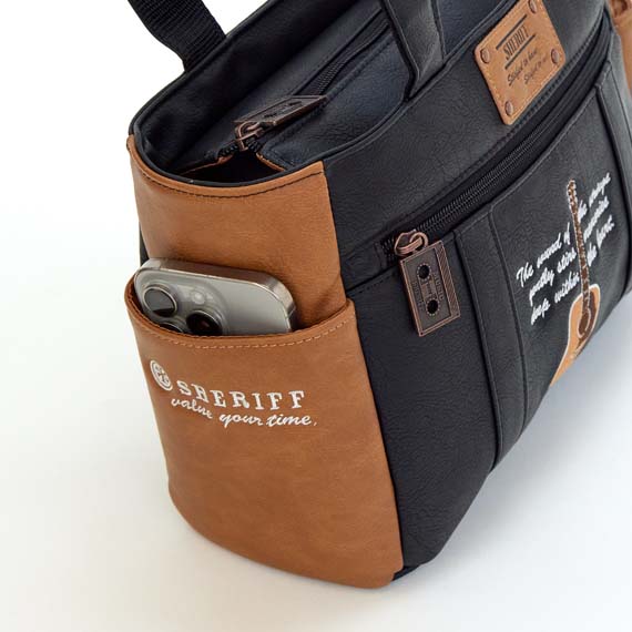 渋さとノスタルジックを感じさせる仕上がりにするため、ハイクオリティな刺繍と一般的にはあまり使われることのない高級素材を使用し、ファッション性にもこだわりました。生地も丈夫で傷が付きにくく撥水性が良い点もシェリフラウンドバッグの特徴です。
