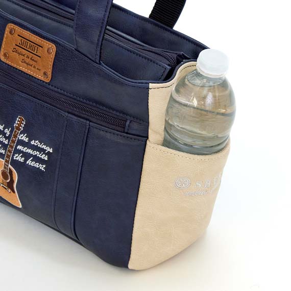 両サイドのポケットには、ペットボトルやスマホ、定期なども入りとても便利です。上部にはメインファスナーを装着して中の物も見えにくく、外側と内側にはポケットがあり収納力も抜群で小分けにも便利です。